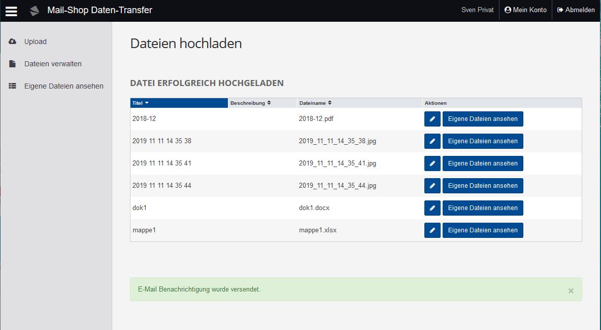 Danach erhalten Sie eine Übersicht über alle hochgeladenen Dateien. Wir werden per E-Mail darüber benachrichtigt, dass Sie uns Daten gesendet haben.